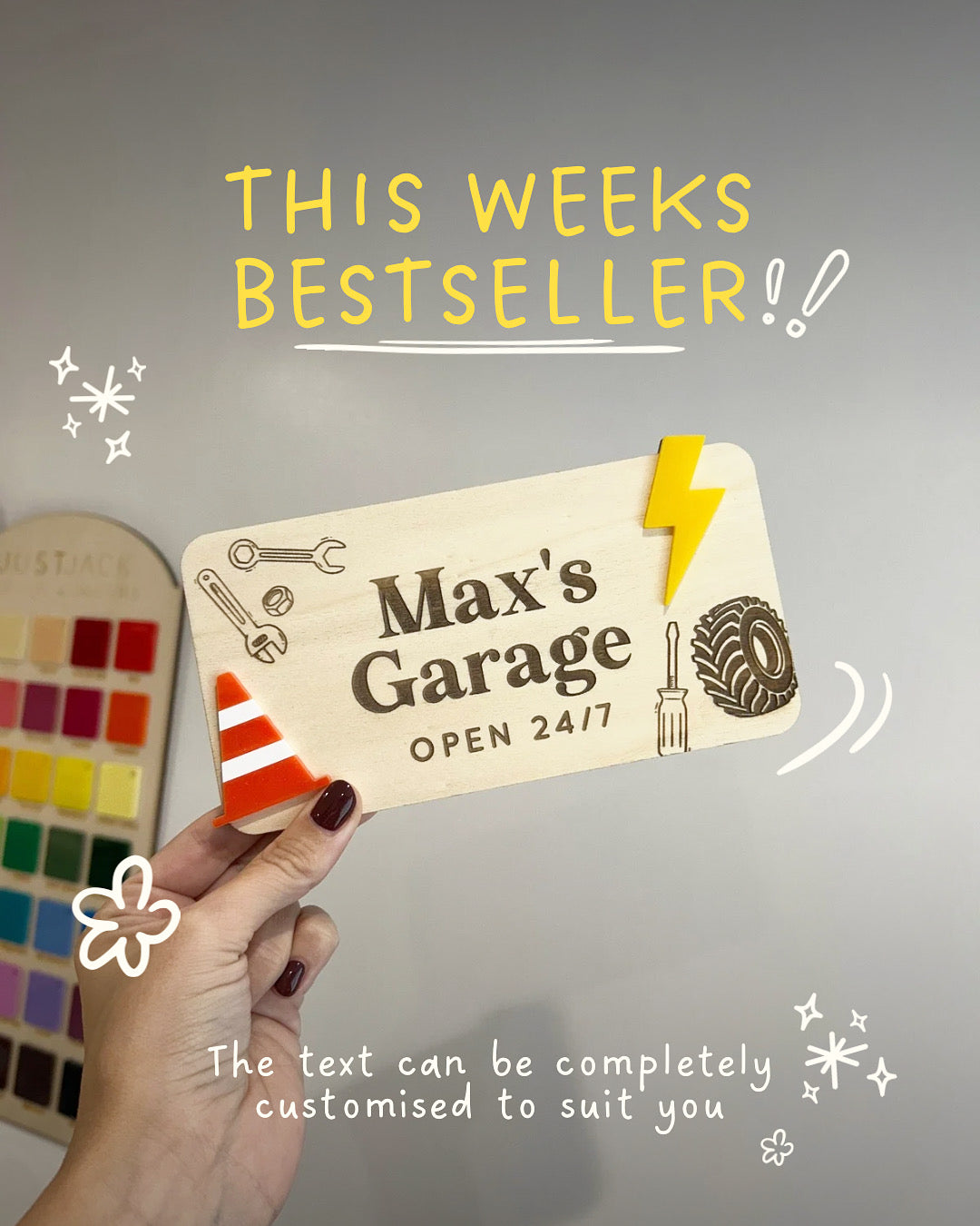 Make your playroom stand out by adding a personalised touch to your little one’s car collection, or just a cool new addition to the playroom wall decor signage!